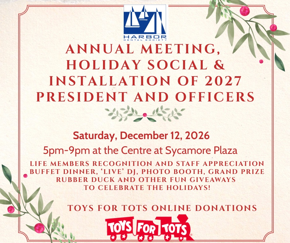 Annual Meeting, Installation & Holiday Social Saturday, December 12, 2026 5pm-9pm The Centre at Sycamore Plaza 5000 Clark St, 1st floor, Maple Room, Lakewood, CA 90712