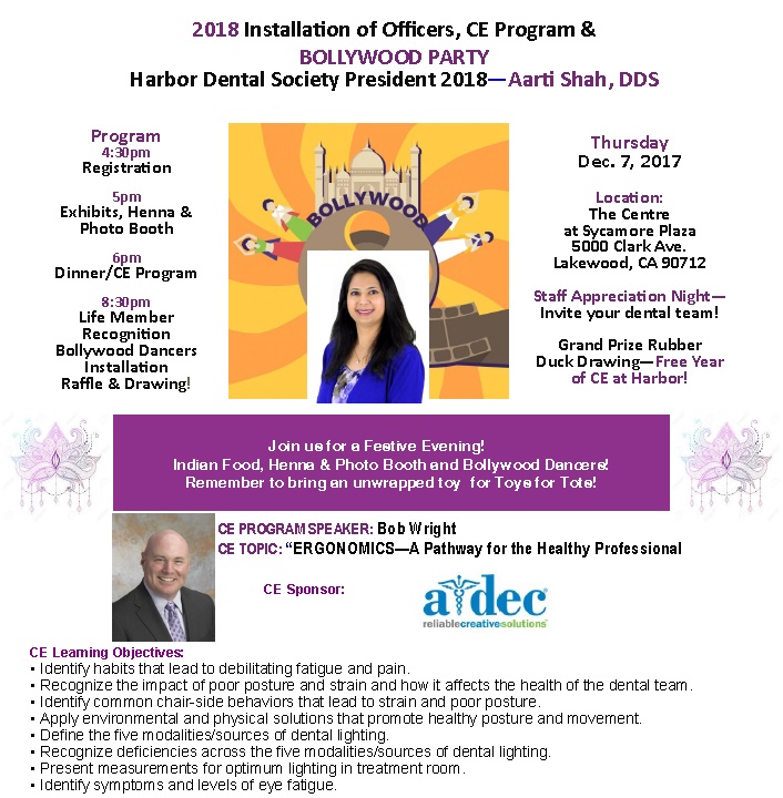CE Program on Ergonomics: A Pathway for the Healthy Professional Annual Meeting and Installation of Officers for 2018 Holiday Party, Staff Appreciation and Life Member Recognition